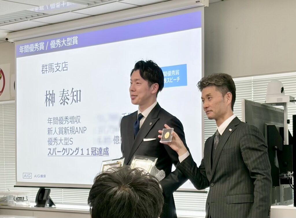 先日開催された AIGマスターセミナー表彰式において、弊社代表の榊󠄀がAIG損害保険株式会社の営業成績優秀者として表彰されました。